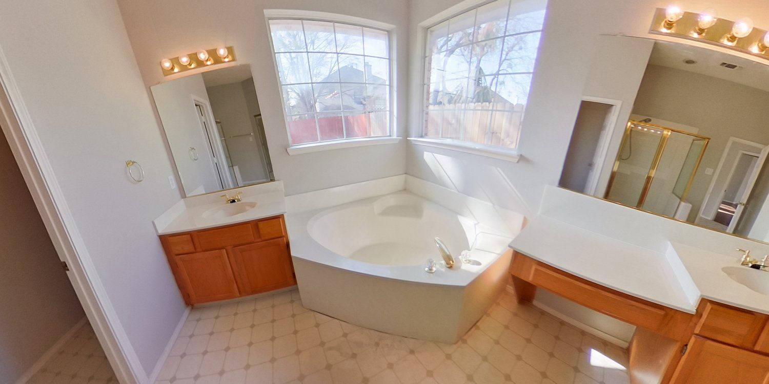 - Master bathroom has garden tub