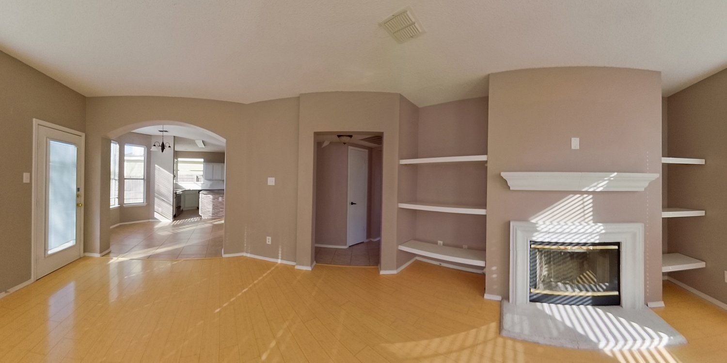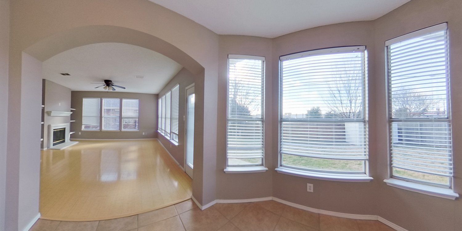 A red brick exterior is an inviting sight at this Fort Worth two-story home! Step inside and discover ample living spaces and natural lighting. The eat-in kitchen boasts a breakfast nook, a central island, stainless steel appliances, and a tile backsplash. The adjacent living room excites with its wood-burning fireplace and built-in shelves. The upstairs Master suite offers vaulted ceilings, a walk-in closet, and a separate shower/tub. Perks include a new HVAC and an upstairs media room - perfect for a home theater or spacious office. Close to a park and casual dining options!